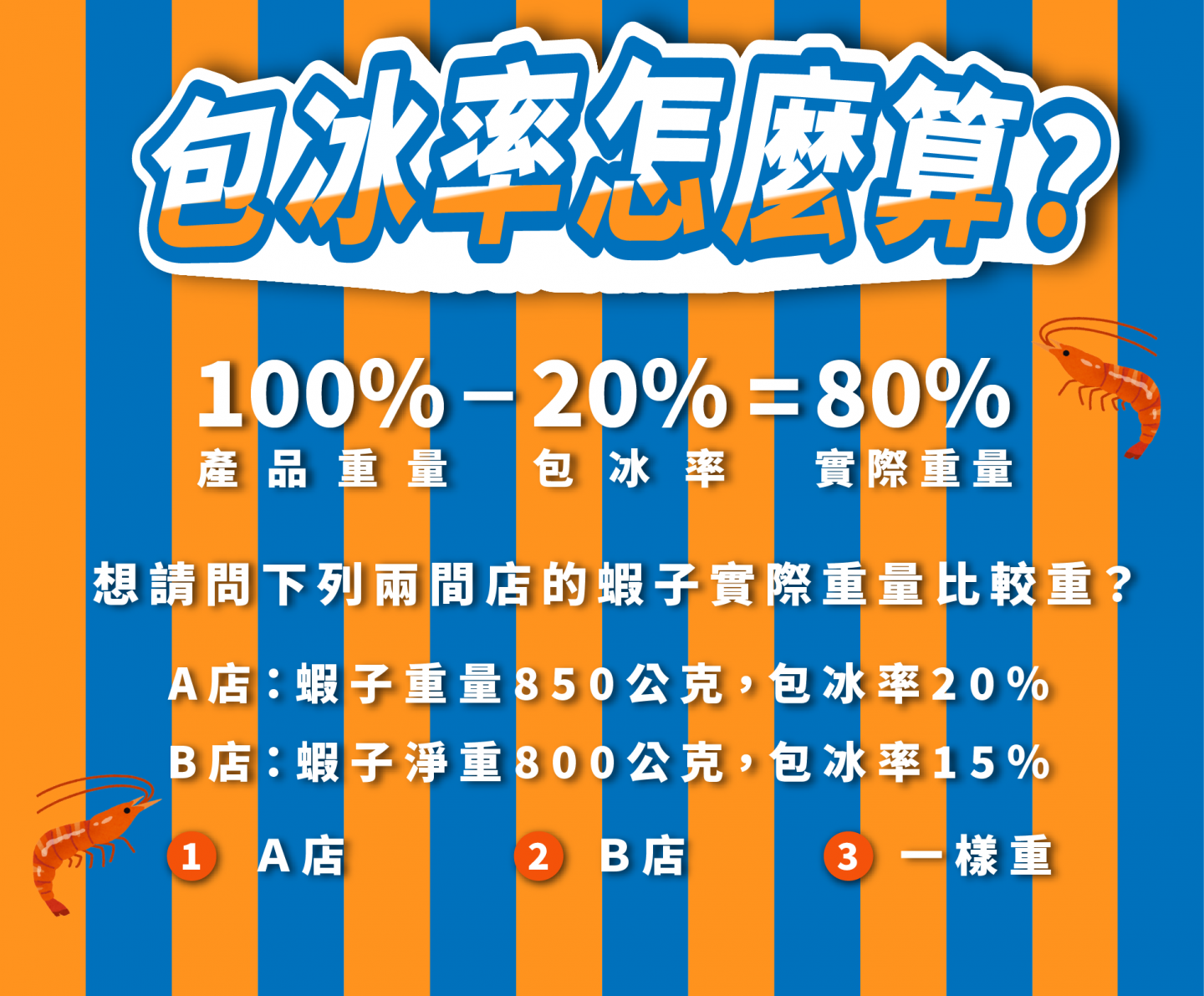 舉個例子,假設你在兩家店看到相同價格的冷凍蝦: