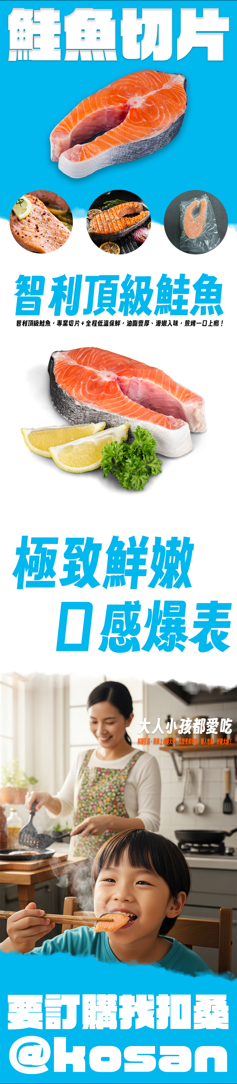 肉質細嫩,色澤自然橙紅,鮮美滋味不需過多調味即可呈現,讓您用平實價格享受高品質的鮭魚美味。