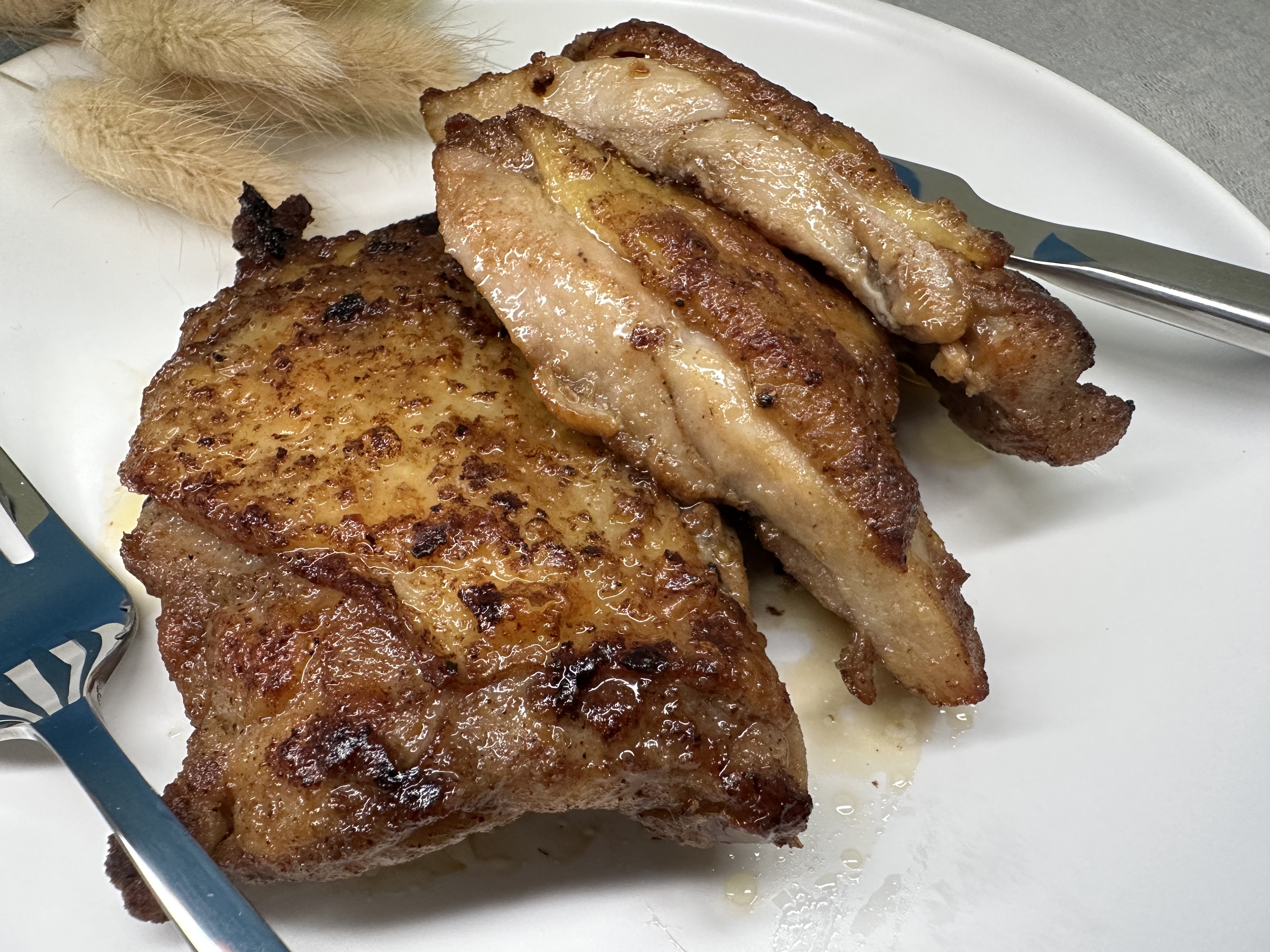 烹調後的雞腿排香氣撲鼻而來,肉質口感鮮嫩多汁帶