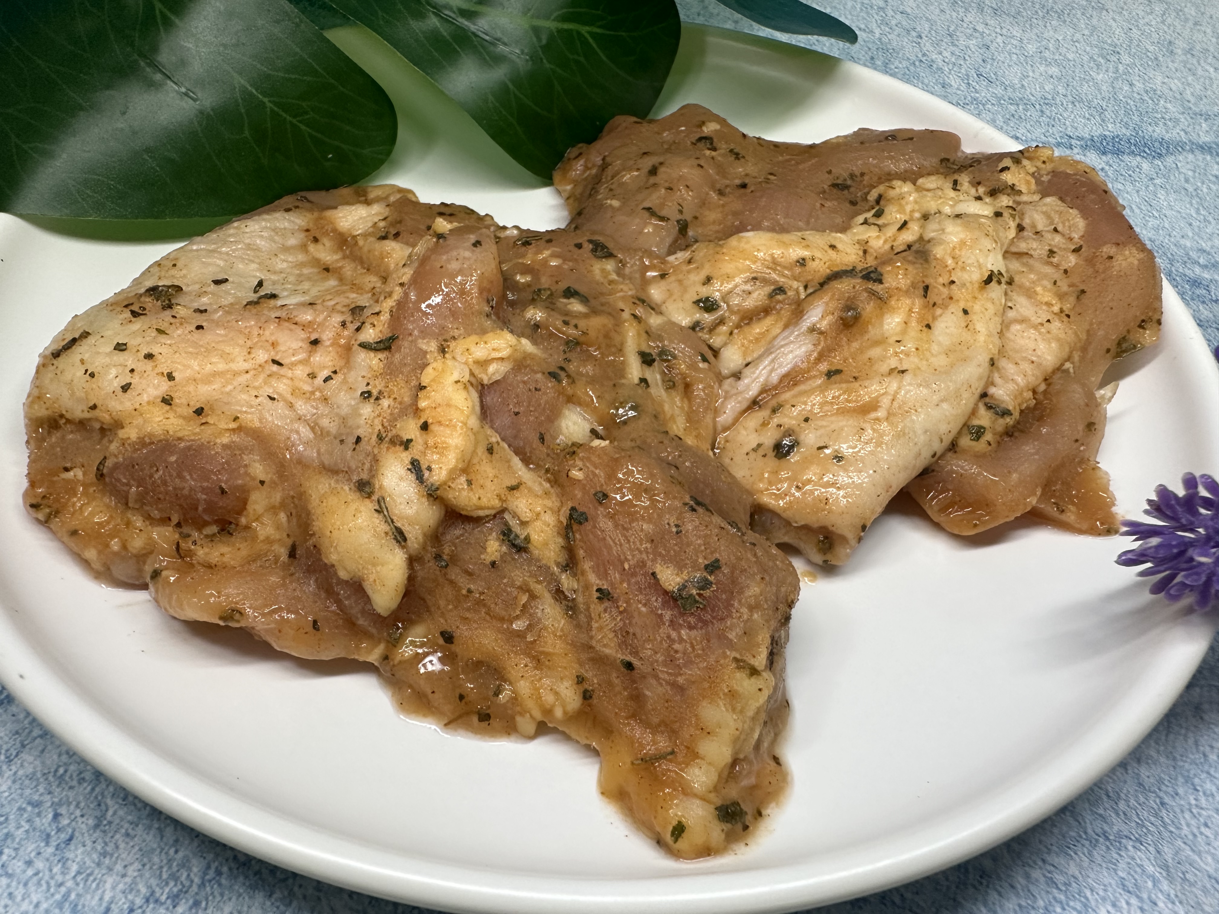 香料醃漬入味而成的蘿勒雞腿排,急凍保鮮鎖住美味